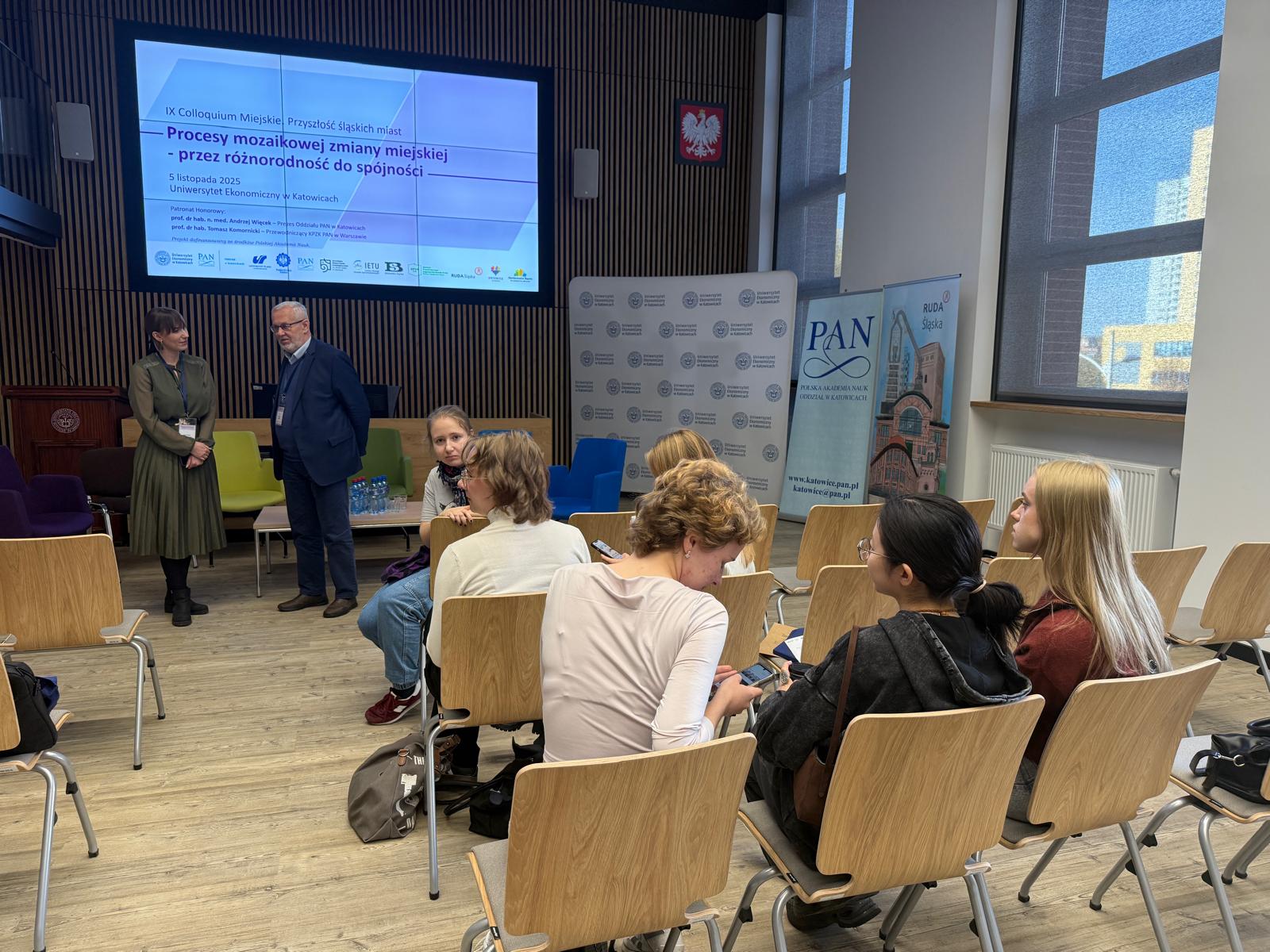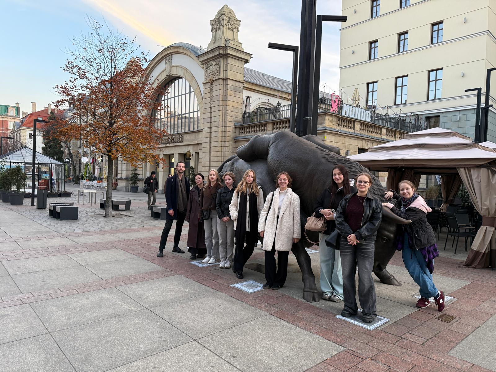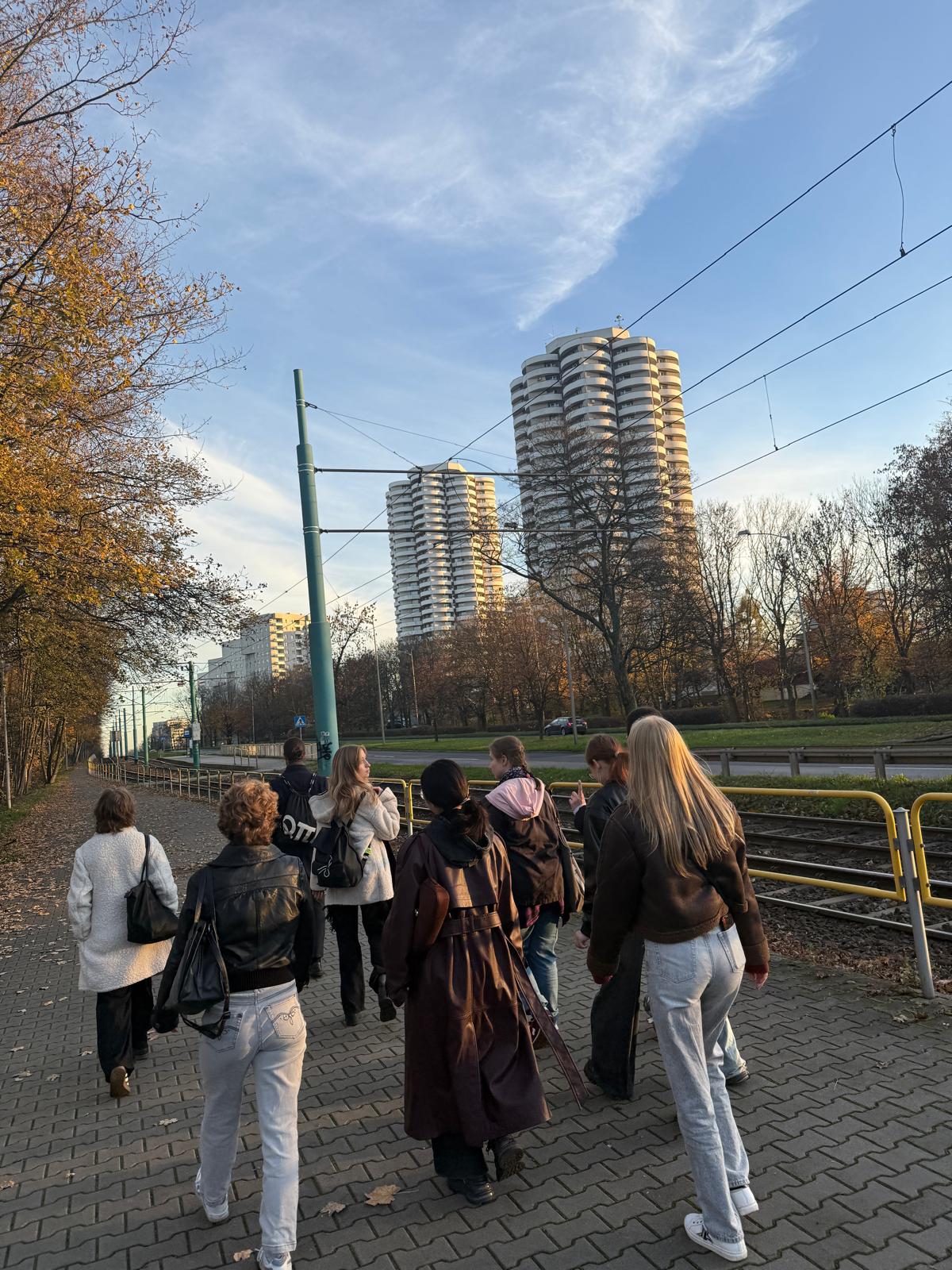 Na zewnątrz piękna polska jesień, czas na zajęcia w terenie! 5 listopada 2025 r. studenci drugiego roku kierunku Design i komunikacja społeczna wybrali się aż do Katowic. Ten intensywnie spędzony dzień rozpoczął się od ciekawej konferencji odbywającej się na Uniwersytecie Ekonomicznym na temat miast – o intrygującej nazwie „IX Colloquium Miejskie. Przyszłość śląskich miast. Procesy Mozaikowej Zmiany Miejskiej – Przez Różnorodność Do Spójności”. Nie pisaliśmy jednak żadnego kolokwium! W otoczeniu ekspertów, naukowców i samorządowców, przysłuchując się poszczególnym debatom, można było sporo dowiedzieć się o zmianach we współczesnych miastach, zjawiskach w nich zachodzących, np. wpływie sztucznej inteligencji, rewitalizacji terenów poprzemysłowych z poszanowaniem dziedzictwa kulturowego i działań samorządów lokalnych na rzecz poprawy jakości życia. Problematyka obrad była interesująca i wpisywała się w tematykę przedmiotu „Przestrzeń miasta: człowiek, kultura, polityka”. Pogoda dopisała nam na szczęście więc po konferencji udaliśmy się do Parku Śląskiego, by zobaczyć jak w bezpośrednim sąsiedztwie zabudowy wielkiego miasta funkcjonuje zielona enklawa, która powstała „w czynie społecznym” w epoce socrealizmu. Następnie udaliśmy się na katowicki plac rynkowy i pobliską ulicę Mariacką, by z bliska przyjrzeć się przestrzeni miasta przemysłowego, ale jakże odmienionego i przyjaznego! Ulica Mariacka, kiedyś pełna samochodów i niezbyt przyjazna, to obecnie dynamiczna przestrzeń miejska, gdzie w cieniu XIX wiecznych kamienic nawet po zmroku tętni życie kulturalne i towarzyskie. To prawdziwa wizytówka Katowic, zachęcająca do dalszego eksplorowania miasta. Zajęcia poprowadzili mgr inż. arch. krajobr. Marcin Marciniak i dr inż. arch. Dżoana Latała-Matysiak. Zapraszamy na kolejne relacje : )